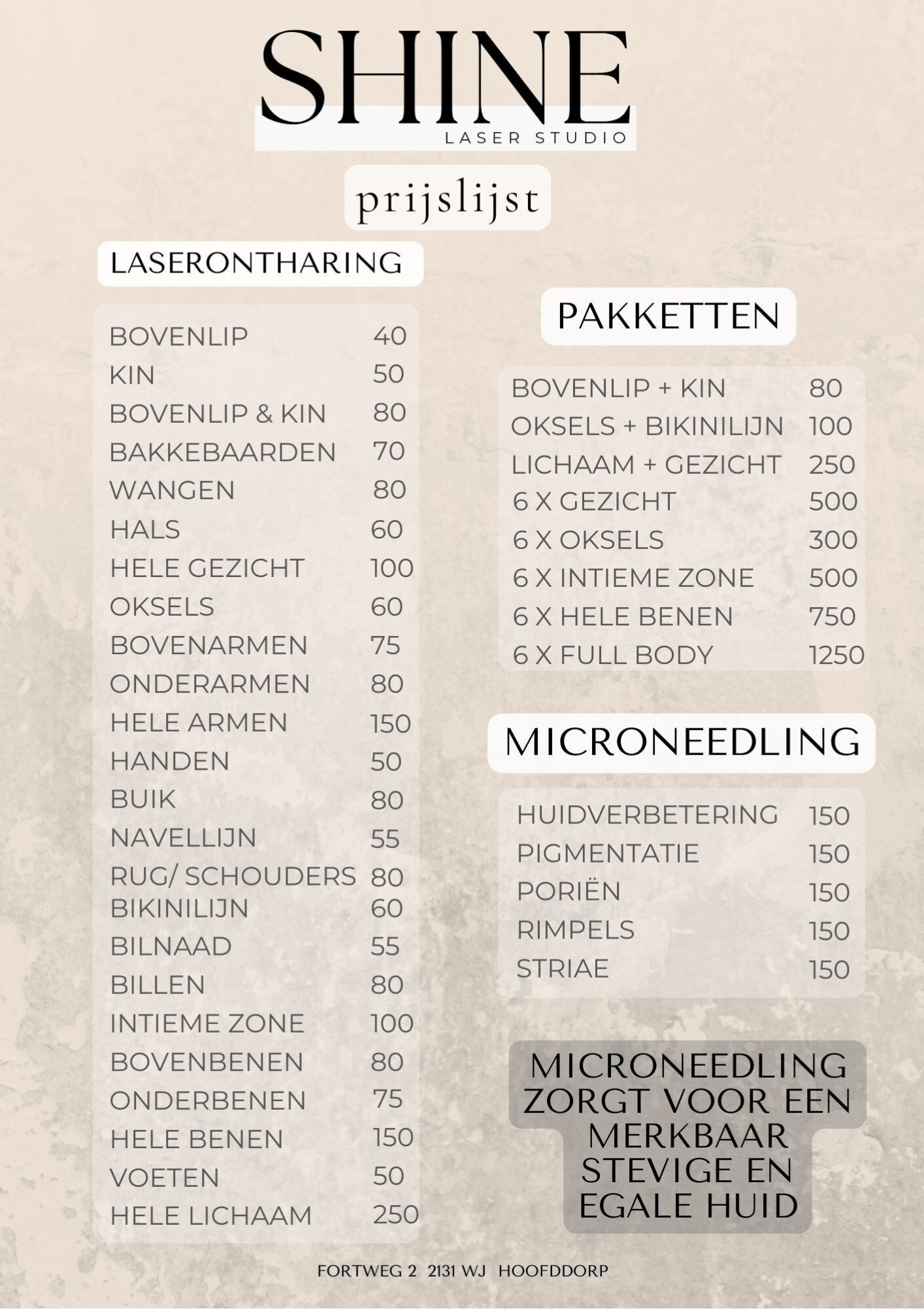 onze prijslijst